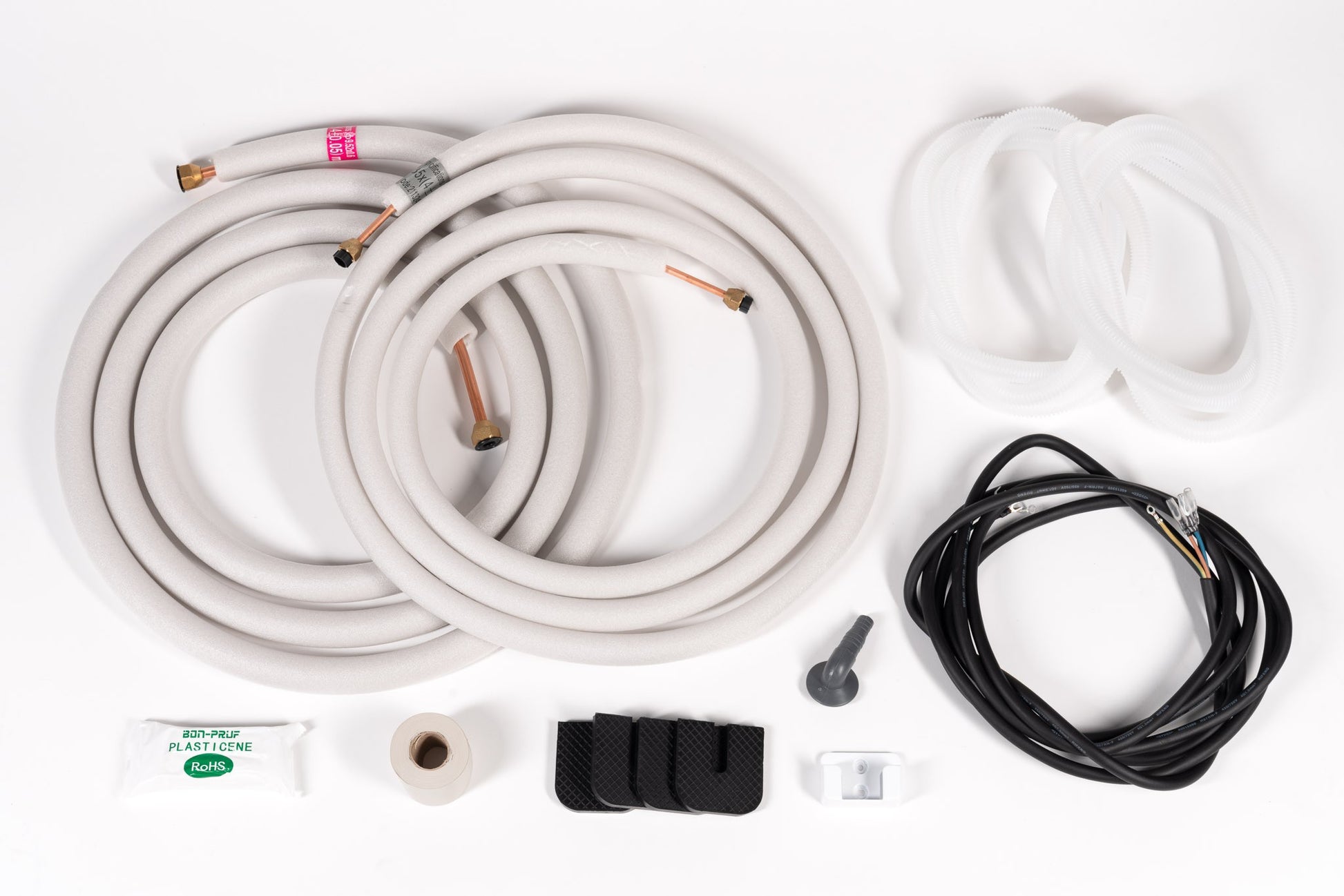 Inclusief maximaal 4 meter montage pakket + 4 meter leidinggoot + Muurgat afdekkap + Muurbeugel of grondblokken. Montage en in bedrijf stellen. Extra meters koelleiding met afwerking worden tegen meerprijs geïnstalleerd.